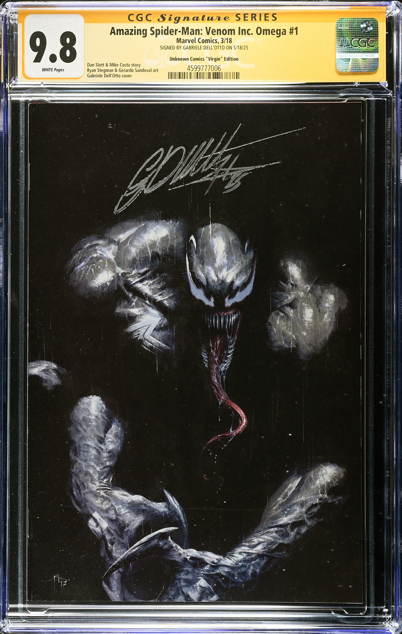 Amazing Spider-Man: Venom Inc. Omega #1, Unkown Comics «Virgin» Sketch Edition. Portada variante exlusiva. Edición limitada a 1.000 unidades de este comic original USA firmado por el dibujante, autor de la portada, GABRIELE DELL’OTTO.